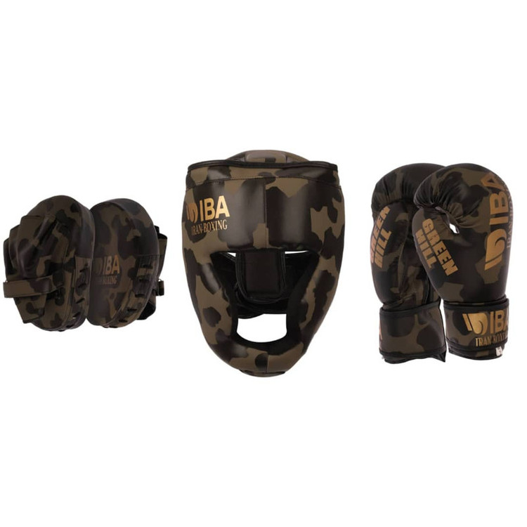 ست دستکش ، کلاه و میت آیبا از بهترین ست های بوکس است که برای انواع ورزشهای رزمی مورد استفاده قرار میگیرد. این محصول از چرم با کیفیت تهیه شده به همین دلیل ضربات وارد شده را به خوبی جذب کرده و از ورزشکار حمایت میکند.